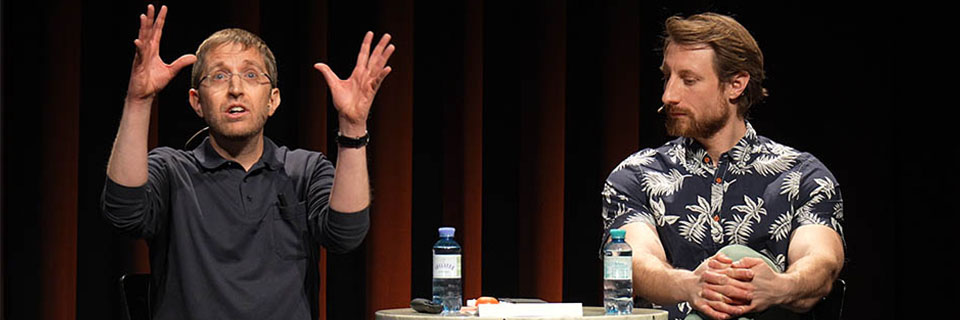 Martin Moder und Florian Aigner nehmen das Publikum mit auf eine verrückte Reise durch die Wissenschaft.